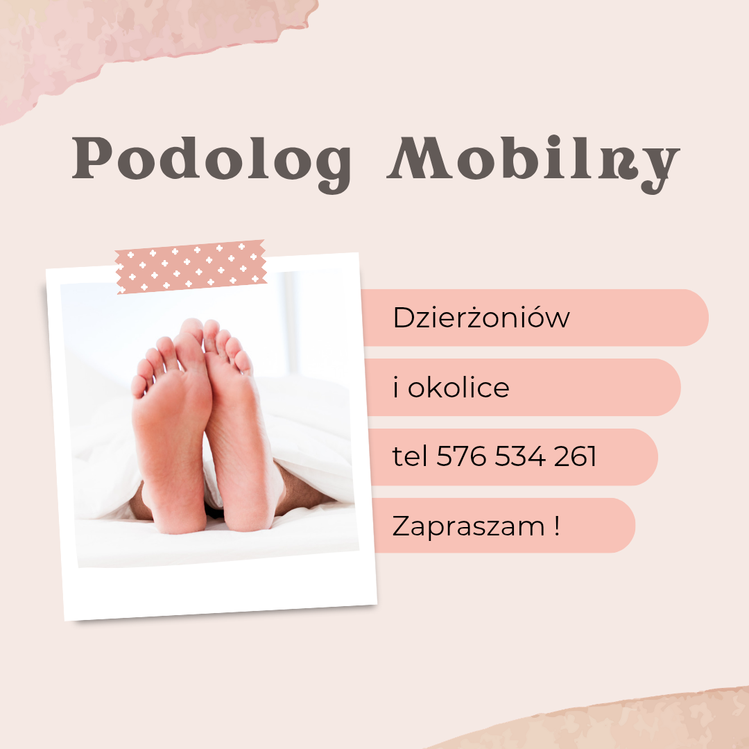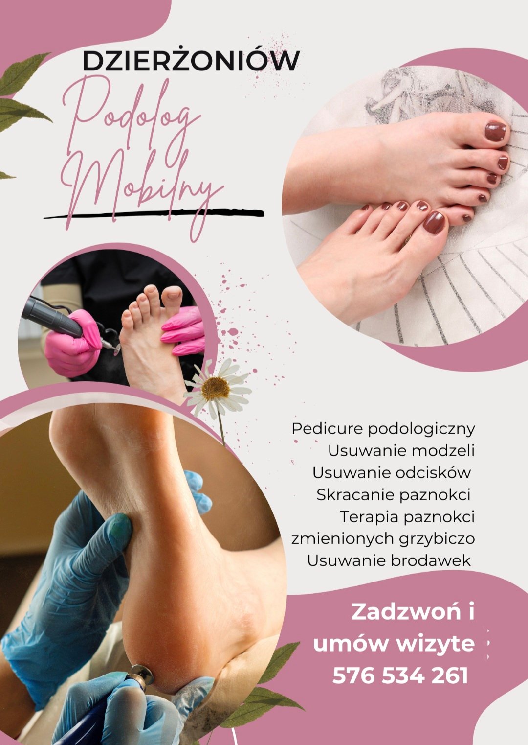 Podolog Mobilny w Dzierżoniowie Mój mobilny gabinet podologiczny specjalizuję się w kompleksowym profesionalnym leczeniu stóp w Twoim domu. Usługa, diagnoza i terapia problemów takich jak wrastające paznokcie, odciski, modzele, grzybica paznokci i stóp oraz pękające pięty. Zapewniam indywidualne podejście i najwyższą jakość usług w komfortowych warunkach. Dzięki mobilności docieram do każdego klienta w Dzierżoniowie i okolicach, oferując wygodne terminy wizyt. Wybierz profesjonalne leczenie stóp w Dzierżoniowie i zadbaj o zdrowie swoich stóp z moim doświadczeniem. Dojeżdżam również do Świdnicy i Bielawy!